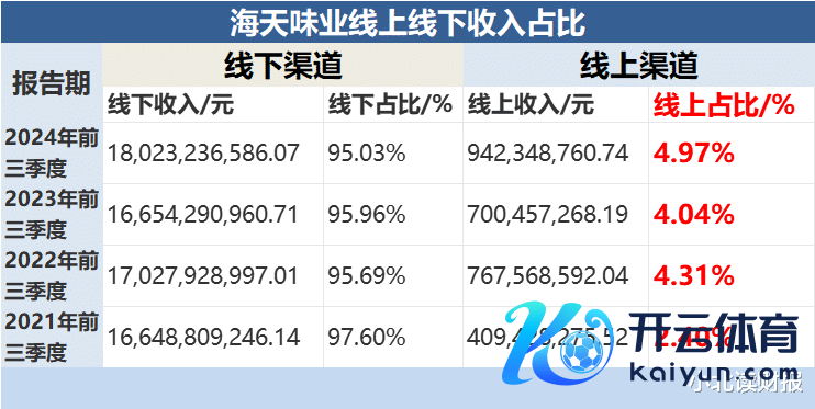 线上收入占比越来越高,从2021年前三季度的2.4%,提高到了2024年前三季度的4.97%。