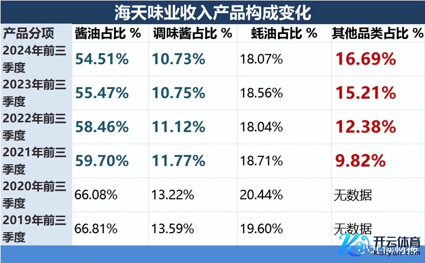 海天味业酱油和调味酱占收入的比重逐年下跌;