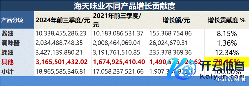 如下表所示,咱们来核算下不同品类对海天味业收入增长的孝敬度。