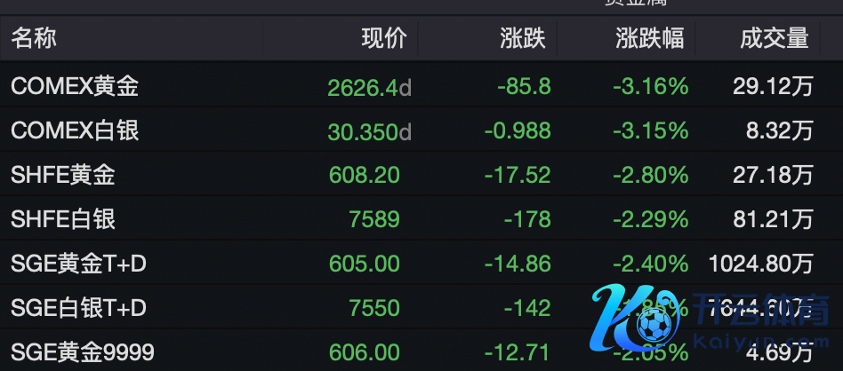 11月25日晚,海外金价休止五连涨走势。COMEX黄金暴跌超3%,最新价超2626好意思元/盎司;COMEX白银一样跌超3%,最新价超30好意思元/盎司。伦敦金现与伦敦银现也跌超3%。