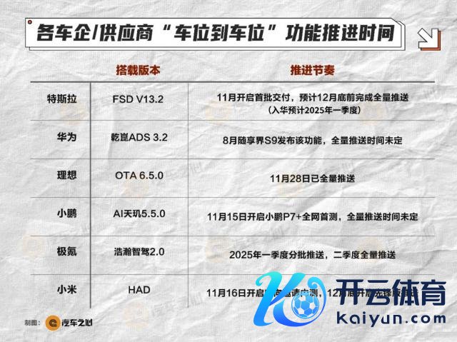 由此,跨过"车位到车位"这谈大坎的玩家们,正在新的竞争形式中开启竞速。目下,华为 ADS 于 2024 年 8 月在享界 S9 委派有关功能;假想汽车在 2024 年 11 月全量推送;小米汽车 12 月推送前卫版;小鹏汽车也积极推动测试与部署;极氪则预计来岁一季度分批推送,二季度全量推送。