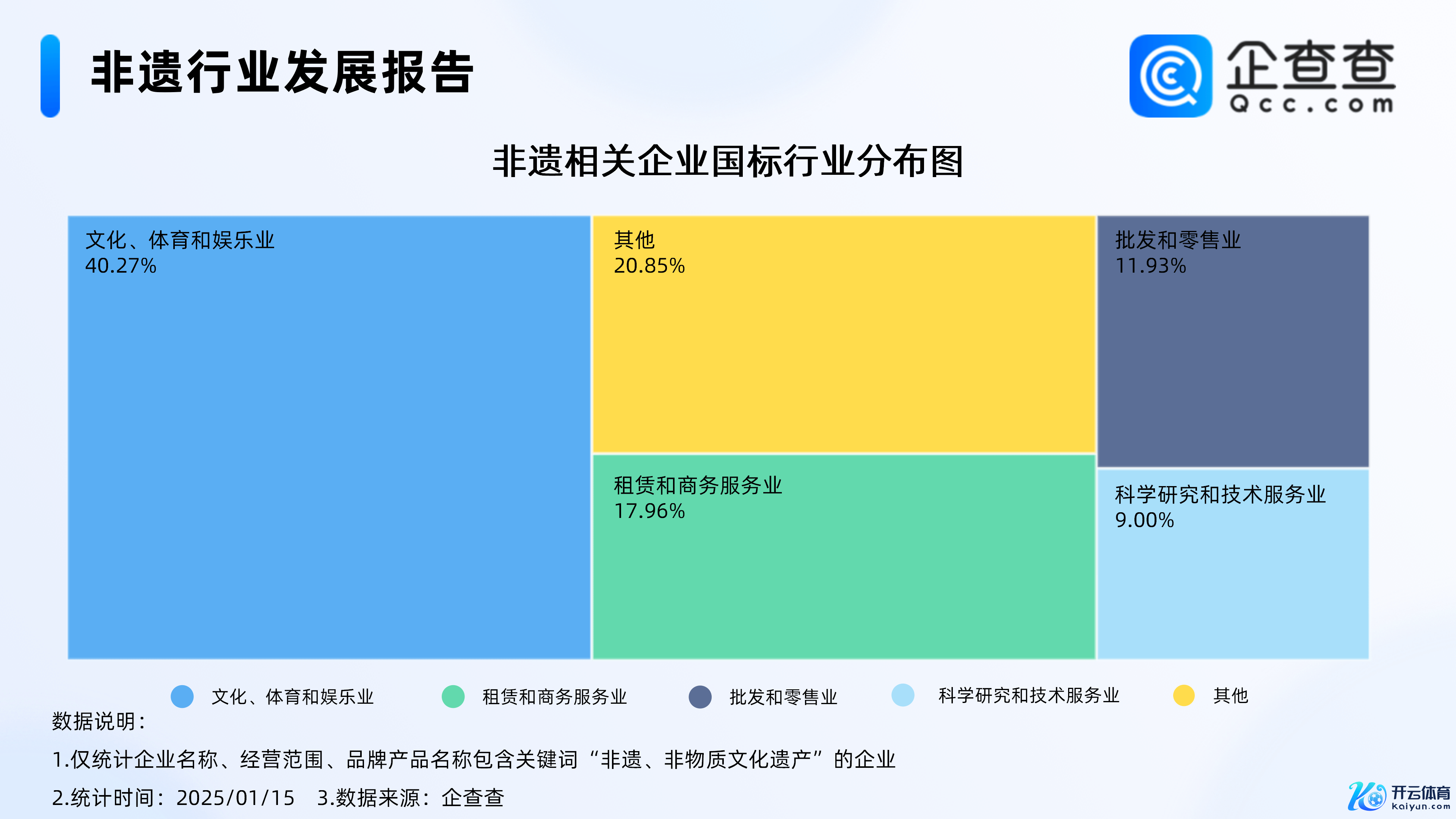 企查查数据泄露,从国标行业的踱步来看,非遗关联现有企业中,包摄于文化、体育和文娱业的关联企业占比最大,达40.27%,其次,包摄租借和商务职业业的非遗关联企业占比17.96%。此外,非遗关联企业在批发和零卖业、科学参议和本领职业业也多有踱步。