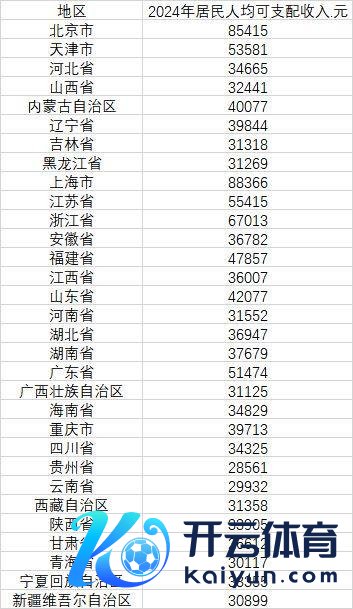 31 个省份 2024 年住户东说念主均可行使收入。数据开头:国度统计局